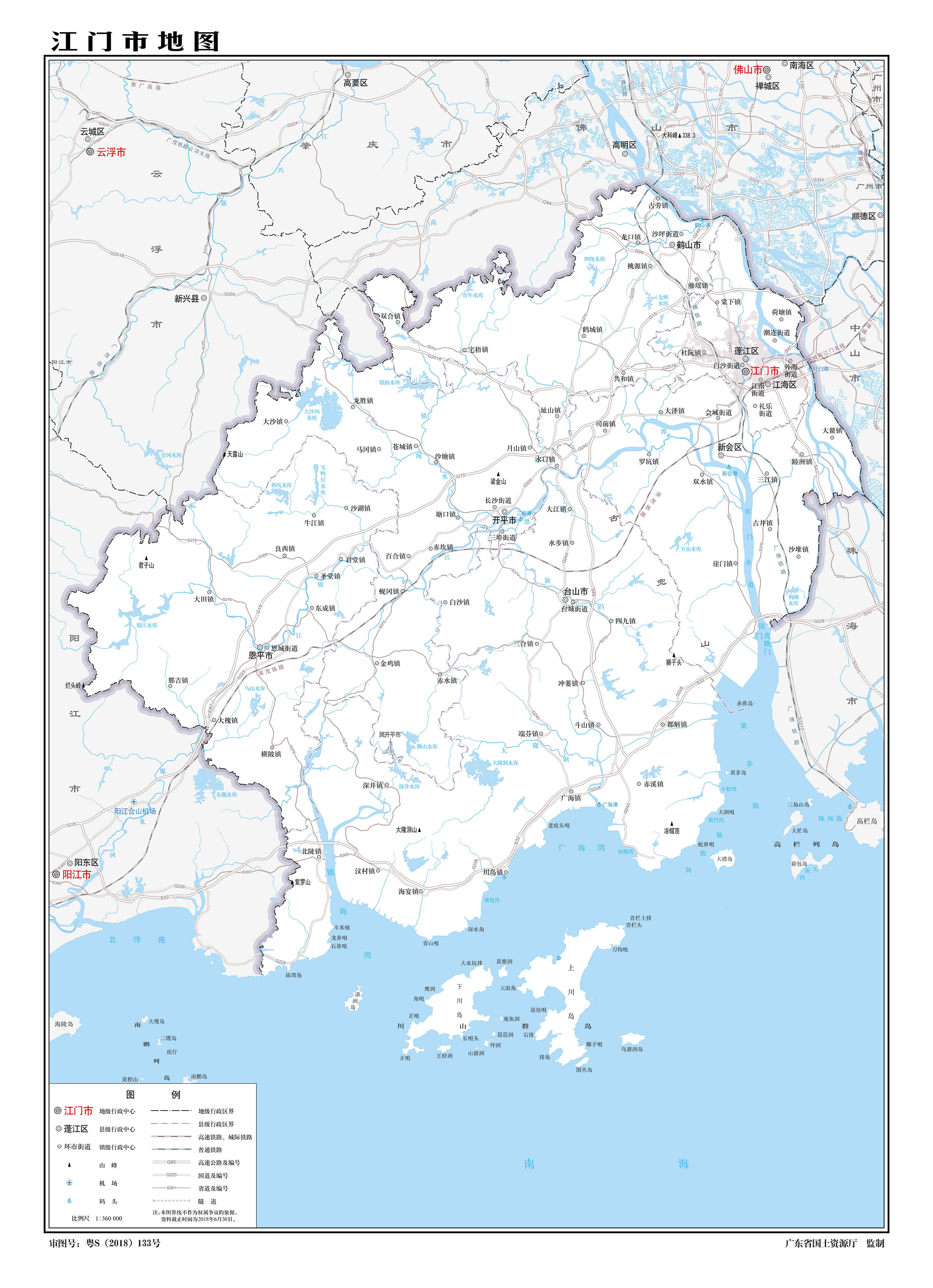 江門市轄3個(gè)市轄區(qū)、代管4個(gè)縣級(jí)市: