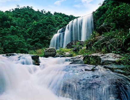 黃滿寨瀑布群旅游區(qū)是國(guó)家4A級(jí)旅游景區(qū),位于廣東省揭陽市揭西縣。黃滿寨瀑布群旅游區(qū)自上而下共分五級(jí):一級(jí)是寬82米、落差56米的飛虹瀑布,三股水流分別從頂端飛懸而下,盛水時(shí)節(jié),更是連成一片,形若貴州黃果樹瀑布。繼續(xù)向前,下行約百米又形成銀河崆瀑布,飛瀑撞擊巖石。沿水往下是落差約120米的落九天瀑布,兩邊巖石高起。在下游是三疊谷瀑布,水流在三個(gè)落差各6米的斷崖處唱陽關(guān)三疊,三個(gè)瀑布錯(cuò)角相連。最下為第五級(jí)瀑布斗方崆瀑布。黃滿寨瀑布群景區(qū)所在的山谷比較幽深,山間林木茂盛,瀑布群鑲嵌在深山峽谷中。