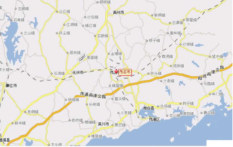 茂名市境內(nèi)公路主骨架主要由國道G325、G207和連接兩條國道、縱貫南北、直通茂名港水東港區(qū)的茂高快線、茂名大道以及東西方向連通化州的茂化快線等主要線路構成。