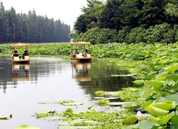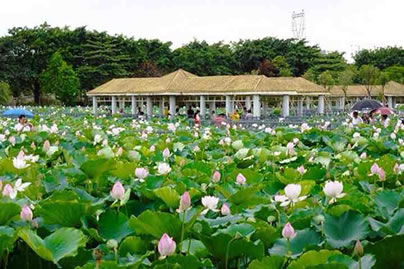 荷花園內(nèi)可觀賞到480個珍稀的荷花品種,其中有太空培育的“太空蓮”、遼寧省出土的 “古代蓮”等珍稀品種,數(shù)十個睡蓮品種,包括從臺灣引進的四季花開的既可觀賞又可食用,同時還有較高的藥用價值的香睡蓮品種,以及各種罕有的水生植物。還有直徑達(dá)1.98米,可以承重40公斤的王蓮、以及形態(tài)萬千的數(shù)百個水生花卉品種。更種植了近100種各式各樣的奇瓜異果,更有直徑60公分,重達(dá)85公斤的巨型大南瓜、開花機率僅為十萬分之一的“并蒂蓮”奇觀,每年均數(shù)次競放荷花世界爭妍斗麗。并按個同功能劃分八大區(qū):文化廣場、中心 區(qū)、品種觀賞區(qū)、王蓮和睡蓮區(qū)、飲食娛樂區(qū)、生產(chǎn)科研育種區(qū)、籽 蓮區(qū)等組成。您可以乘車或徒步游覽景區(qū),也可以蕩舟在荷花叢中, 采摘蓮于、蓮藕,別有一番情趣。