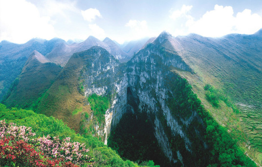 通靈大峽谷:位于靖西縣城東南部32公里的湖潤鎮(zhèn)新靈村,古龍山水源林自然保護(hù)區(qū)的南端,由念八峽、銅靈霞、古勞峽、新靈峽、新橋峽組成,總長10多公里。念八河從古龍山脈緩蜒而下,依次穿越五個(gè)峽谷,流入湖潤臺(tái)地。每個(gè)峽谷內(nèi)薈萃了舉世罕見的特高瀑布群、洞中瀑布、地下暗河、峽谷溪流、洞穴奇觀、古石壘、古懸葬、原始植被等自然景觀與人文景觀。