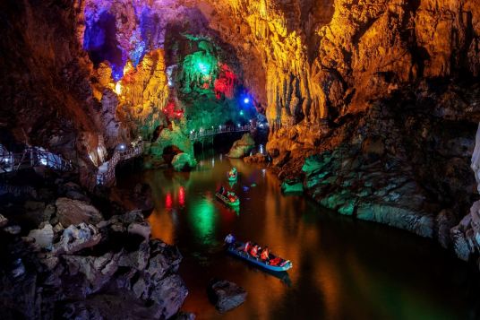 廣西平果通天河景區(qū)又稱“敢沫巖”、“紅軍巖”,是一個(gè)溶洞暗河型景區(qū),位于平果市黎明鄉(xiāng)208省道旁,地處平果平治河巖溶自治區(qū)級(jí)地質(zhì)公園核心。通天河景區(qū)于2013年被評(píng)為國家AAAA景區(qū)。景區(qū)地理位置優(yōu)越,東距大化紅水河28千米,可連接大化七百弄等景點(diǎn);北距巴馬縣63千米,208省道直達(dá),適合與巴馬連線旅游,可連接“東巴鳳”各景點(diǎn);西可連接百色、德天瀑布、通靈大峽谷等景點(diǎn);南距南寧190千米,可連接南寧、北海等景點(diǎn)。