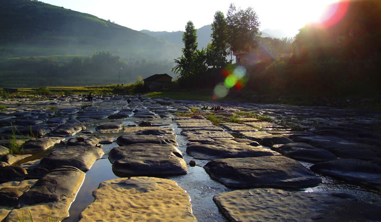 “神奇棋盤”坐落于田東縣最高峰——蓮花山下的靈岐河上,離那拔鎮(zhèn)政府僅3千米,距田東縣城40公里。專家認(rèn)為,水是縱向流動(dòng)的,但棋盤灘“水橫流”,這成了一個(gè)難解之謎。 棋盤灘面積約有30000多平方米,“棋盤”由一塊塊浮出水面的,大小為1平方米左右的石塊組成,每一塊石塊的四周都被深、寬都在30厘米,縱橫交錯(cuò),互相貫通的水溝圍繞,而且常年流水潺潺,人在“棋子”上可以任意走動(dòng),水不濕腳。