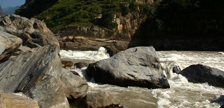 虎跳峽景區(qū),俗稱老虎跳,位于那坡縣百省鄉(xiāng)貴港新村與百南鄉(xiāng)上蓋水電站之間的那孟河畔,東興至那坡沿邊三級(jí)柏油路穿越其中,交通便利,可銜接那坡縣及廣西中越邊境公路旅游帶各景區(qū)區(qū)域旅游網(wǎng)。 老虎跳景區(qū)屬砂頁(yè)巖層斷裂帶中山地貌類型,中間夾雜少量石灰?guī)r石山,山巒連綿,溝谷幽深,地形復(fù)雜。該景區(qū)的旅游資源特色是“邊陲天塹,峽谷畫(huà)廊;邊關(guān)風(fēng)俗,苗族風(fēng)情”,擁有險(xiǎn)峻幽深的溪河峽谷,保存完好的原始森林區(qū)及特色是明顯的苗族風(fēng)俗與動(dòng)聽(tīng)的民間傳說(shuō)典故等,融“山、水、林、峽、邊關(guān)民族風(fēng)情”于一體,具有雄、險(xiǎn)、奇、秀、幽、野等景觀特征,是邊境公路旅游帶上具有較高旅游開(kāi)發(fā)價(jià)值的生存型自然山水風(fēng)景區(qū)。