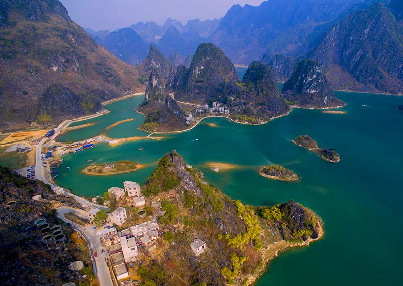 浩坤湖,位于百色市凌云縣下甲鎮(zhèn)和伶站鄉(xiāng)交界的地域,是澄碧河水系堵洞而成的湖,湖長6公里,湖寬50至1500米。豐水期湖面面積約20平方公里。 浩坤湖發(fā)源于青龍山的澄碧河是珠江源之一,澄碧河水自水源洞噴流而出,先在洞口盤根錯節(jié)的千年古榕下聚成一彎綠瑩瑩的湖,再流穿過凌云縣城中心曲曲折折地流出城外去。澄碧河穿過泗城,流經(jīng)一個叫下甲的地方,在彩架鉆入地下,潛行5公里后在弄盤露出地面,河水流經(jīng)下甲弄盤至伶站浩坤一帶受阻而成湖,這就是浩坤湖。 浩坤湖是凌云這高山林立的地方最大的一片水面,古時叫東湖, 俗稱高山神湖。湖山秀美、岸線曲折,島渚星羅,幾十座山峰緊緊挾攜著一湖碧水,湖內(nèi)島嶼交錯,水天一色,兩岸山奇崖秀:巨龍入地,掌上明珠、情蛙對語、望子牧歸、雞犬相聞、神駝昂首、相思夢縈,岸上花艷竹翠,藍(lán)天青山倒映水中,山水天渾然一體,令人陶醉,湖面寬闊,水質(zhì)清澈,自然風(fēng)光十分優(yōu)美,岸畔竹影婆娑,釣翁頻現(xiàn),花樹掩映,黃髫小兒戲水,馬兒羊羔撒歡,老牛吃著嫩草,一派溫馨和諧、天人合一景象,是美麗南方中一片難得的自然景觀。具有良好的水上觀光、度假旅游的自然地貌基礎(chǔ)。