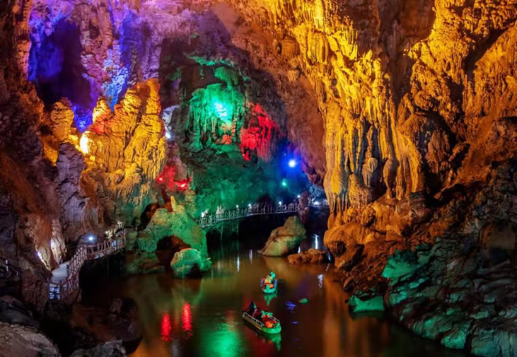 廣西平果通天河景區(qū)又稱“敢沫巖”、“紅軍巖”,是一個(gè)溶洞暗河型景區(qū),位于廣西百色市平果縣黎明鄉(xiāng)208省道旁。溶洞最大特點(diǎn)是面積大,總面積超過10萬平方米,其中“天上人間”面積3.3萬平方米;空氣好,6處洞口空氣通暢;空間高,最高的“九九洞天”99米;景點(diǎn)多,石筍、石柱、石幔、石瀑、石盾、石梯田、石鐘乳千姿百態(tài),鬼斧神工,20米以上石柱26余根;景觀奇,“神奇龍脊”長達(dá)60多米,鎮(zhèn)洞之寶“金銀雙塔”各高達(dá)30多米。通天河景區(qū)于2013年被評(píng)為國家AAAA景區(qū)。景區(qū)位于廣西西南部中心地帶,東距大化紅水河28公里,可連接大化七百弄等景點(diǎn);北距巴馬縣63公里,208省道直達(dá),適合與巴馬連線旅游,可連接“東巴鳳”各景點(diǎn);西可連接百色、德天瀑布、通靈大峽谷等景點(diǎn);南距南寧190公里,可連接南寧、北海等景點(diǎn)。