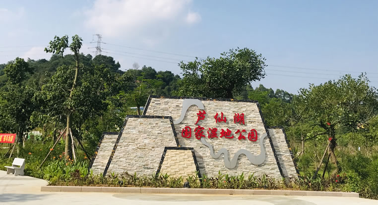 蘆仙湖風(fēng)景區(qū)位于平果縣城以東的那馬水庫,距縣城3.8公里,毗鄰武鳴—平果二級(jí)公路。蘆仙湖發(fā)源于平果市原耶圩鄉(xiāng)的蘆山,蘆山壯語發(fā)音是岜六,意思是像船一樣的山,岜六山下的水叫蘆江。“蘆仙”二字取蘆江仙境之意。景區(qū)面積1032.5公頃,其中水域全長8.5公里,面積85公頃,湖區(qū)水面寬闊,水深7~15米不等,最深的地方有40米。蘆仙湖旅游分為船游湖區(qū)和徒步觀光、水上游樂項(xiàng)目等。蘆仙湖水上游樂項(xiàng)目于2007年2月18日對(duì)游人開放。景區(qū)共有大型畫舫、快艇、電動(dòng)船、手劃船、腳踏船等游船數(shù)十艘,可同時(shí)供200名游客上船游玩。景區(qū)水路總長約8公里,游客可乘坐大型畫舫、電動(dòng)船、手劃船、腳踏船在景區(qū)水面上欣賞自然風(fēng)光。陸路總長1.33公里,游客可沿著寬1.2米的景區(qū)小路進(jìn)行徒步觀光。在步行途中,有竹木結(jié)構(gòu)的休息長廊、風(fēng)雨橋、六角亭、九曲橋、雙重四角亭等集休息、觀賞功能的設(shè)施,湖區(qū)深處叢林掩映中設(shè)有大型燒烤場(chǎng)地。
