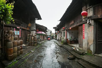 古鎮(zhèn)所有的房屋都是磚木結(jié)構(gòu),房門是一排木板,早晨把木板拿掉,家里的一切是透明的;到了晚上,再把木板裝上,就與外界隔絕了。這些房屋,每棟都有數(shù)百年的歷史。走在石板鋪成的街道上,房前有“咕嚕!蔽疅煹睦先艘约芭吭诶先四_邊打瞌睡的黃狗;肩上站著兩只魚(yú)鷹的漁夫穿著草鞋,從你身邊走過(guò),去江邊捕魚(yú);有相鄰的婦女在拉家常,時(shí)間仿佛在這里放慢行進(jìn)的腳步,生活顯得非常平靜,然而卻很溫馨。