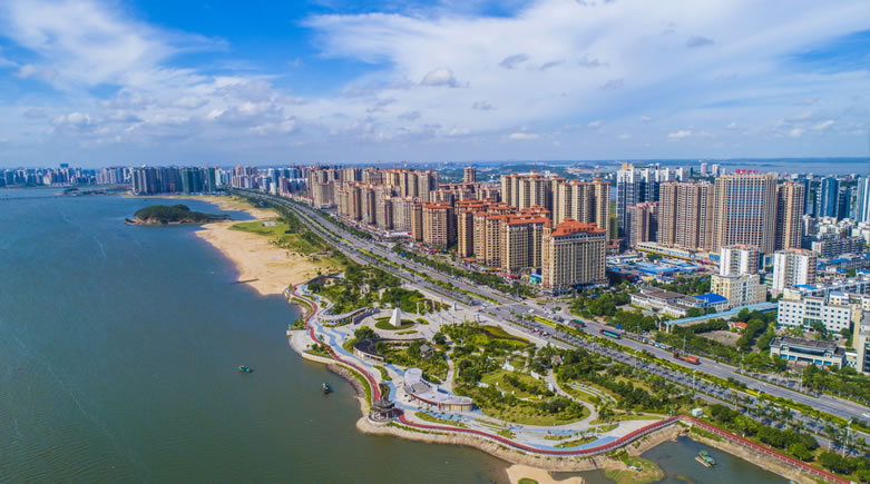 位置境域 港口區(qū),位于防城港市東南部。東鄰欽州市欽南區(qū),南瀕北部灣,西、北與防城區(qū)相連。南北最大縱距20.92千米,東西最大橫距21.49千米,總面積409.95平方千米。