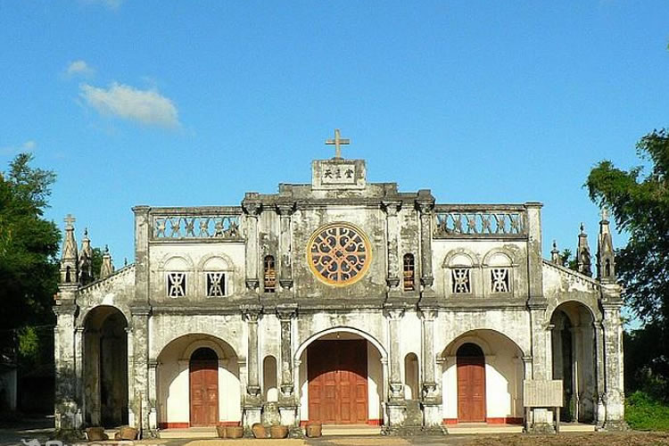 羅浮恒望天主教堂距離市中心約5公里,由法國(guó)傳教士建于1832年,歷史悠久。當(dāng)時(shí)的羅浮天主教堂屬北海教區(qū)。初建時(shí)教堂占地10000余平方米,設(shè)有教堂、鐘樓、育嬰室(收養(yǎng)棄嬰)、男校、仁愛(ài)堂、圣堂、織紡堂等。由于歷經(jīng)歲月的沖刷、歷次政治風(fēng)暴的滌蕩以及人口不斷增加的影響,如今的羅浮天主教堂只剩幾百米的范圍內(nèi)。羅浮天主教堂是東興所有的三個(gè)教堂中最為典型的法式建筑。教堂正面及兩側(cè)由十幾根柱子托起,形成大半框形的走廊。每根柱子之間都砌成拱形的門(mén)的形狀,相互承接。每根柱子的上方都修成如鐘樓的樣式,并努力地讓它接近天空。