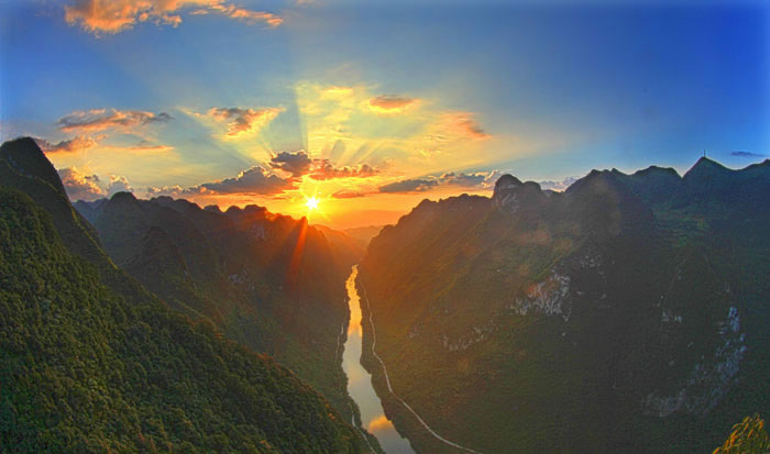 旅游資源。天峨是國家銅鼓文化生態(tài)保護實驗區(qū)的核心區(qū)(天峨、南丹、東蘭)縣份之一,共有壯族螞拐節(jié)、壯族銅鼓習俗兩項國家非物質(zhì)文化遺產(chǎn),有壯族八仙、壯族螞拐舞、壯族筒噔藝術(shù)等5項自治區(qū)非物質(zhì)文化遺產(chǎn)。境內(nèi)有國家4A級景區(qū)1個(龍灘大峽谷國家森林公園)、國家3A級景區(qū)2個(龍灘水電站、川洞河燕子湖景區(qū)),自治區(qū)生態(tài)旅游示范區(qū)1個,四星級鄉(xiāng)村旅游區(qū)5家(山旮旯生態(tài)農(nóng)業(yè)旅游區(qū)、六美生態(tài)農(nóng)業(yè)休閑區(qū)、川洞河燕子湖鄉(xiāng)村旅游區(qū)、雙龍瀑布·金花茶園、板凳老家鄉(xiāng)村旅游區(qū)),星級農(nóng)家樂19家,星級酒店4家,基本形成“一山(大山)一洞(川洞)一峽谷(龍灘大峽谷),一河(紅水河)一湖(龍灘天湖)一電站(龍灘水電站),一花(油桐花)一橋(仙人橋)一文化(螞拐文化)”的旅游發(fā)展格局,逐步成為生態(tài)休閑旅游的理想圣地。