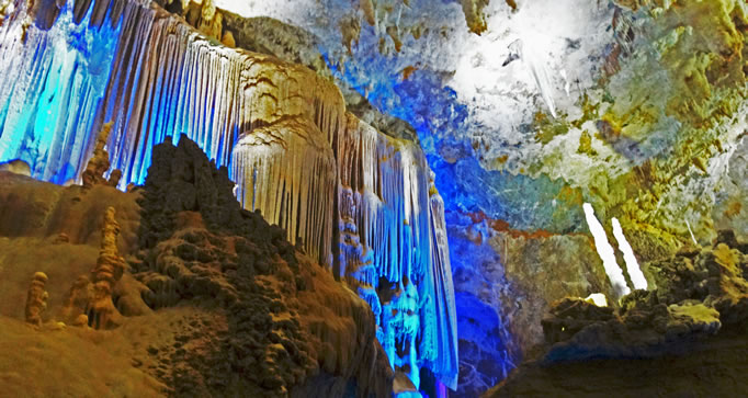 水晶宮位于縣城西北的那社鄉(xiāng)大洛村牛洞屯,距縣城約等43千米,交通便利。水晶宮發(fā)育在峰叢洼地谷地巖溶地貌區(qū),地形起伏大,洞口位于巖溶峰簇的山坡上,高出現(xiàn)代侵蝕面約150米。 水晶宮以潔白純凈、密集分布的石毛發(fā)、卷曲石、石花等景觀為顯著特色,珍惜景觀。洞內(nèi)空氣負(fù)氧離子含量很高,達(dá)到每立方厘米36000-70000個(gè),為洞外的5-10倍。 水晶宮為廊道狀的中型洞穴,洞穴基本上順巖層層面面發(fā)育,除數(shù)處大廳外,總體上洞道高低起伏不大。據(jù)初步調(diào)查,水晶宮的長度總長度1000多米,寬8至50米,高10至80米。洞底局部有軟式和細(xì)沙土沉積物。水晶宮內(nèi)的鐘乳石類有重力水趁機(jī)累的鵝管、鐘乳石、石筍、石柱、石帶、石旗和各類石幔、石瀑布、石盾等;非重力水晶沉積類的石毛發(fā)、卷曲石、石花等數(shù)十種,形態(tài)多彩多姿,雪白純凈,玲瓏剔透,集天下藝術(shù)珍品于一洞,且正在生長之中,極具觀賞價(jià)值和科學(xué)探究價(jià)值。