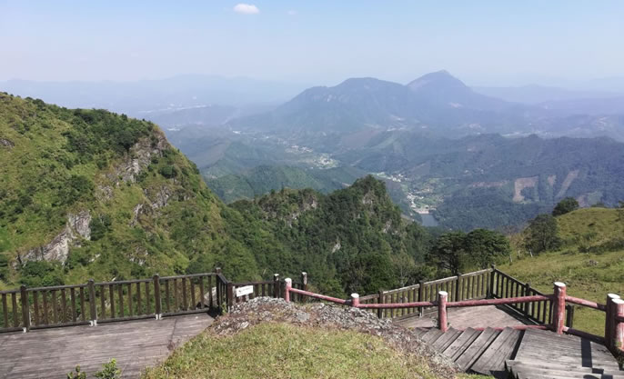 天龍頂國家山地公園位于岑溪市南渡鎮(zhèn),占地面積15平方千米。景區(qū)主峰天龍頂海拔1221米,相對高度221米,屬云開大山山脈的主峰。景區(qū)內(nèi)海拔高于1000米以上的山峰還有石豹頂、公婆頂、湖廣頂?shù)人淖椒濉>皡^(qū)的自然資源具有多樣性,景區(qū)內(nèi)有高山湖泊、原始森林、溝壑峽谷、溪谷瀑布群、海拔1000米之上的高山草甸、海拔1200多米的丹霞山峰、延綿近數(shù)十里的斷層崖壁等等,形成了一個具有旅游觀光、休閑度假、戶外運動等多功能的復(fù)合型景區(qū)。同時,天龍頂國家山地公園也是一個純天然自然氧吧,空氣中負離子含量高達35000個/立方米。