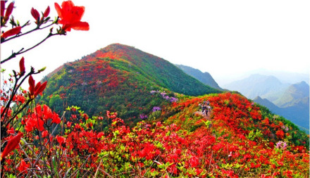 百里杜鵑風(fēng)景名勝區(qū),冬無嚴(yán)寒,夏無酷暑,暖溫帶濕潤季風(fēng)氣候,年平均溫度11.8°C,年降雨量為1150.4mm。生長在高海拔、低緯度的杜鵑花,暮春三月,竟相怒放,繁花似錦,姹紫嫣紅。