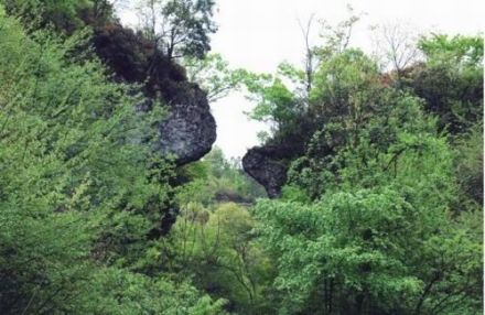 “千年一吻”景點,又叫“對嘴巖”!扒暌晃恰庇蓛勺嗡朴H吻的山巖構(gòu)成,左巖高大、右?guī)r矮小。兩巖底下形成深谷,谷內(nèi)幽深,冬暖夏涼,與周圍的杜鵑花相輝映。一年四季,谷外景色或姹紫嫣紅或冰封雪蓋,不過任憑谷外寒來暑往,景色多變,谷內(nèi)始終保持迷人的春色。