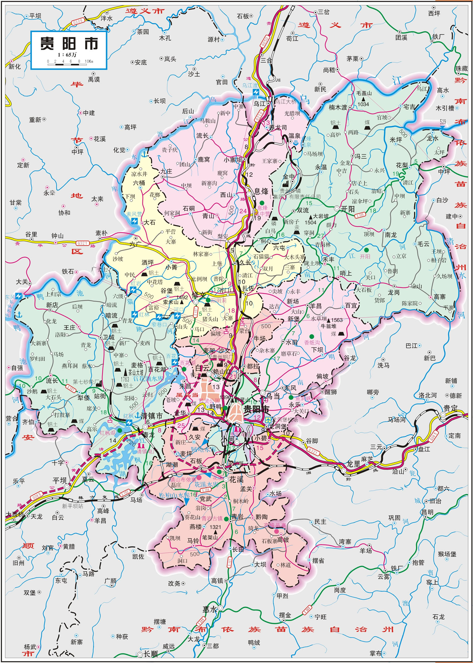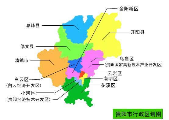 貴陽市轄6個(gè)區(qū)、3個(gè)縣、代管1個(gè)縣級(jí)市: