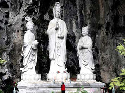 觀音洞,全國最大的洞中寺院,總體面積達(dá)2萬多平方米,最大的特點就是所有的殿堂都是天然溶洞。人工雕刻佛像32尊,其中觀音像高達(dá)12.6米,主殿上有一天然神似觀音的鐘乳石,天然和人造的佛像渾為一體。天下名山僧占多,而天然溶洞寺院實屬罕見,其規(guī)模居全國之首。