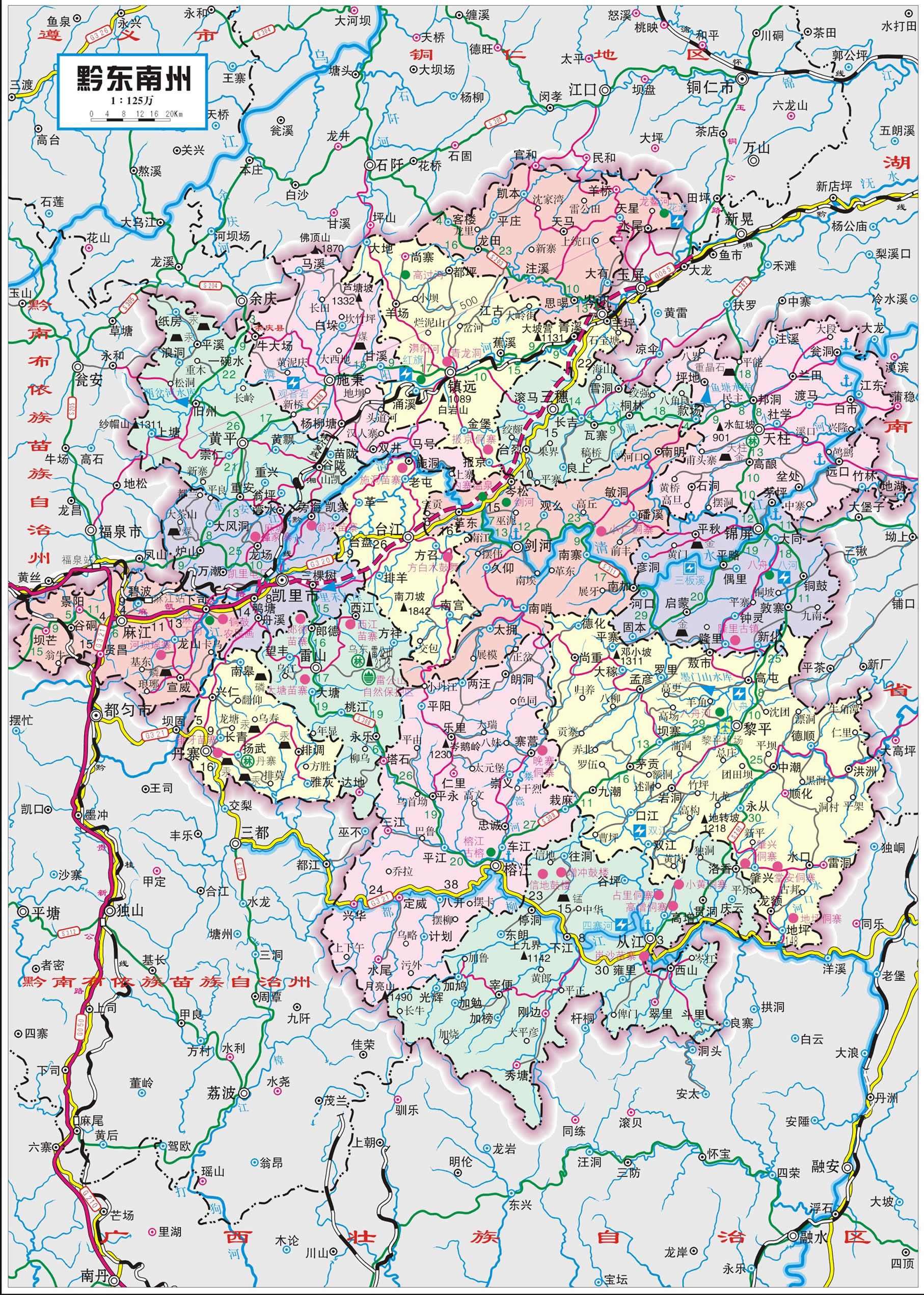 黔東南苗族侗族自治州轄15個(gè)縣,1個(gè)縣級(jí)市: