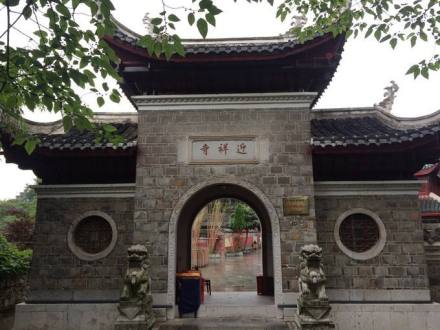 迎祥寺是貴陽的古剎之一,始建于明朝天啟元年(1621年),有“黔山祖廟”之稱。寺有三重,前為天王殿,中為大雄寶殿,后為觀音殿。奇怪的是,在觀音菩薩樓上,卻坐著一個(gè)三眼、四頭、八臂的“斗姆”,因?yàn)榉、道共處,?dāng)?shù)厝顺0延樗潞魹槎纺烽w。