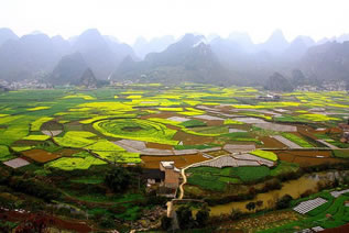而中南部納灰村一帶,只見一座座奇峰從錦繡田園中拔地而起,瑰奇挺秀,姿態(tài)萬千,峰與峰之間若連若斷,錯(cuò)落有致具有極強(qiáng)的透空感。萬峰林生態(tài)良好,民族風(fēng)情濃郁。座座奇美的山巒,與碧綠的田野、彎曲的河流、古樸的村寨、蔥郁的樹林融為一體,構(gòu)成大自然中最佳的生態(tài)環(huán)境,形成罕見的峰林田園風(fēng)光。人們都說:要觀天下最美的風(fēng)光,到萬峰林;要觀天下最美的田園,到萬峰林。