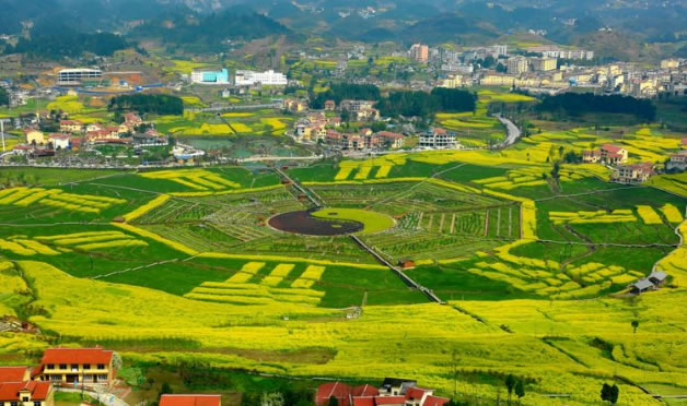 神采八卦園景區(qū)是國(guó)家AAA級(jí)旅游景區(qū),位于貴州省遵義市仁懷市。神采八卦位于壇廠鎮(zhèn)枇杷村,占地640畝,依天然的地形地貌,用木棧道分出八條經(jīng)線,以澳洲馬鞭子草為底色,栽種油菜(冬春季)和粱。
