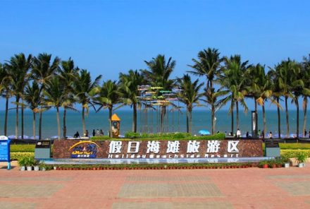 于1995年7月開業(yè),是國家AAAA級(jí)旅游景區(qū),地處?谑形骱0稙I海大道一側(cè),是一個(gè)集陽光、海浪、沙灘等元素為一體的濱海旅游休閑勝地。景區(qū)跨度綿延長達(dá)6千米,左側(cè)是蔥翠的林麻黃林帶,右側(cè)是碧波萬頃的瓊州海峽,海面船只穿梭,犁銀濺玉。這里陽光、海水、沙灘、椰樹相映成趣,構(gòu)成一幅美麗動(dòng)人的自然畫面。整個(gè)景區(qū)由海灘日浴區(qū)、海上運(yùn)動(dòng)區(qū)、海洋餐飲文化區(qū)和休閑度假區(qū)四個(gè)部分組成。