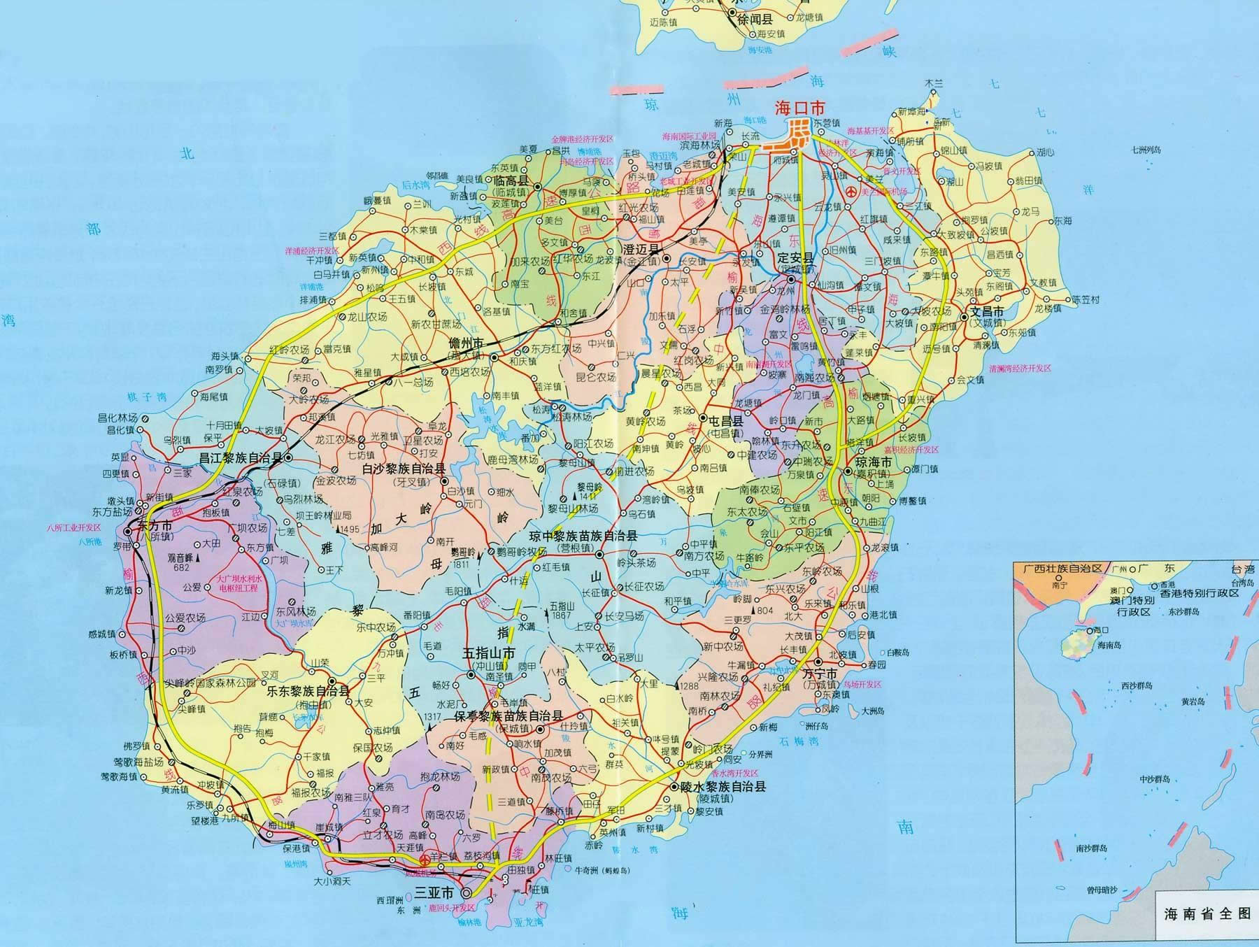 今天,海南已經(jīng)成為一個著名的旅游勝地,以?诤腿齺啚閮蓚端點(diǎn),海南的旅游行程基本分為三條線,一條是東海岸的海濱旅游風(fēng)景線,一條是中線的黎苗少數(shù)民族風(fēng)景線,另一條是西海岸的原始叢林風(fēng)景線。其中,三亞是海南之旅中的精華所在。