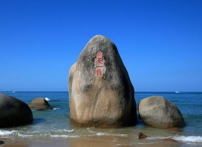 “天涯石”位于景區(qū)西北方,是景區(qū)的標(biāo)志和象征。高10.8米,周長約66米,獨占海灣一角,有億萬年的歷史。