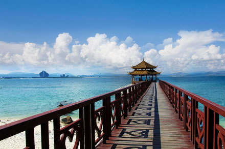 蜈支洲島靠近海南東線高速公路,位置優(yōu)越,交通便利?沙酥袊(guó)最大的氣墊船、能載客70人的"水上漂"上島。蜈支州島屬熱帶海洋氣候,全年溫和氣爽,四季怡人,是度假、休閑、避寒、冬泳、娛樂(lè)的理想去處。島東、南部最高峰海拔79.9米,懸崖壁立,其下礁石萬(wàn)狀,驚濤擊石,浪花如雪。西及北部地勢(shì)漸平,一彎沙灘,沙質(zhì)細(xì)白。