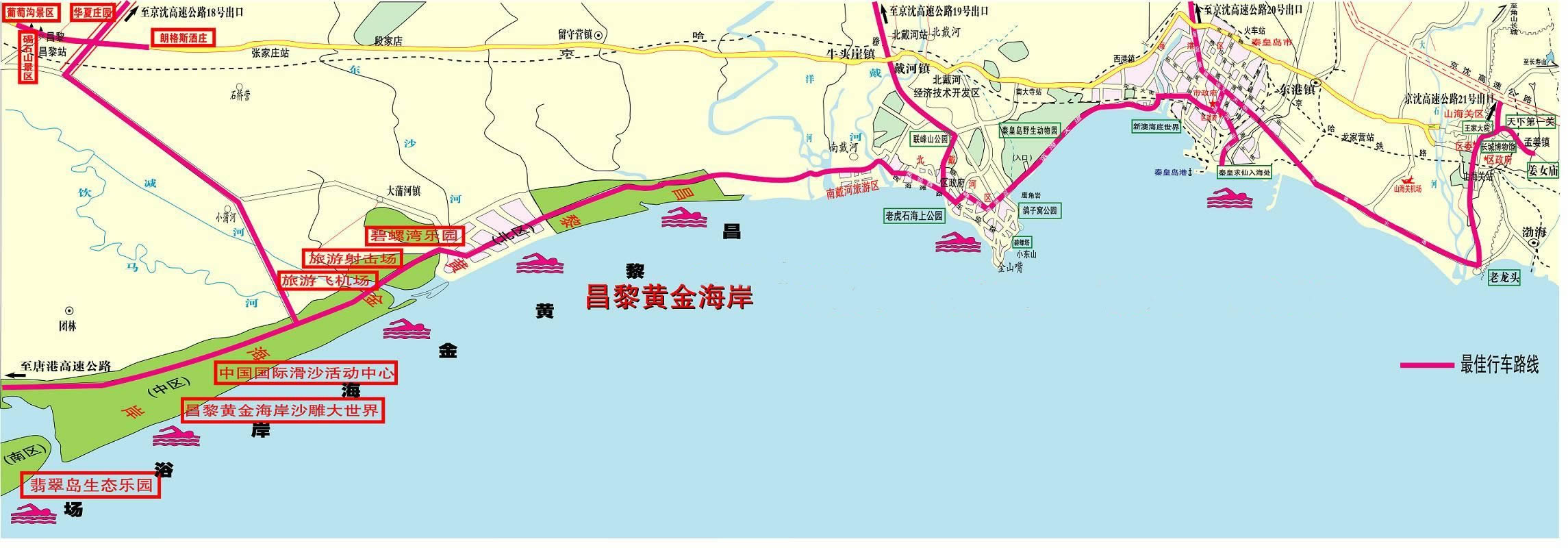 位于河北省昌黎縣東南面的渤海岸邊,海岸線全長(zhǎng)52.1公里,具有沙細(xì),灘軟,水清,潮平的特點(diǎn),是進(jìn)行海水浴、陽(yáng)光浴、沙浴、森林浴、空氣浴的理想地點(diǎn)。