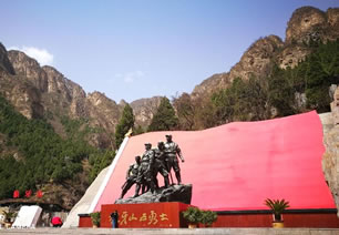 抗日戰(zhàn)爭時期,狼牙山是著名的抗日根據(jù)地。1941年9月25日,馬寶玉、胡德林、胡福才、葛振林、宋學(xué)義五名戰(zhàn)士為掩護(hù)主力部隊(duì)轉(zhuǎn)移,被敵人逼到狼牙山頂峰,跳下了懸崖。這就是著名的狼牙山五勇士。五勇士跳崖后,馬寶玉、胡德林、胡福才為國捐軀,壯烈犧牲,葛振林、宋學(xué)義被懸崖上的樹枝掛住而得救。