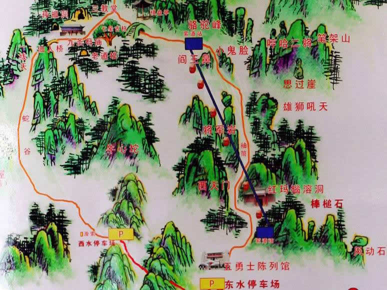 狼牙山原名郎山,因漢武帝時太子劉據(jù)之子為躲避“巫蠱之獄”避難于此而得名。西漢武帝晚年多病,疑其左右為巫蠱(埋木偶人,詛咒害人)所致,涉及皇后、太子、公主等親屬,太子劉據(jù)自殺,其子遠(yuǎn)遁該山,故名。郎山下原有西晉太康元年(280)詔錫郎山君(漢武帝孫)及其子觸鋒將軍父子法祀碑與郎山君祠、觸鋒將軍廟。郎與狼諧音,亦名狼山。因山峰聳立,危峰參差迭起似狼牙,又稱狼牙山,為古易州十景和古城保定八景之一的“狼山競秀”。山上不但有風(fēng)動石、仙人橋、南天門等自然奇觀,還有老君堂、三教堂、蠶姑廟等眾多的文物古跡。狼牙山五勇士之壯舉,名聞海內(nèi)外,為國家森林公園和愛國主義教育基地,國家紅色旅游熱線景區(qū)。緬懷先烈,銘記歷史,愛我中華,狼牙山風(fēng)景區(qū)決定每年9月25日狼牙山五勇士(馬寶玉、葛振林、宋學(xué)義、胡德林,胡福才)跳崖紀(jì)念日當(dāng)天免費(fèi)對游客開放!拔∥⊙嗌礁撸瑸t瀟易水寒。英雄五壯士,威震狼牙山!1941年9月25日五勇士為了掩護(hù)部隊(duì)撤離他們面對步步逼近的日偽軍,寧死不屈,毀掉槍支,義無反顧,縱身跳下數(shù)十丈深的懸崖。