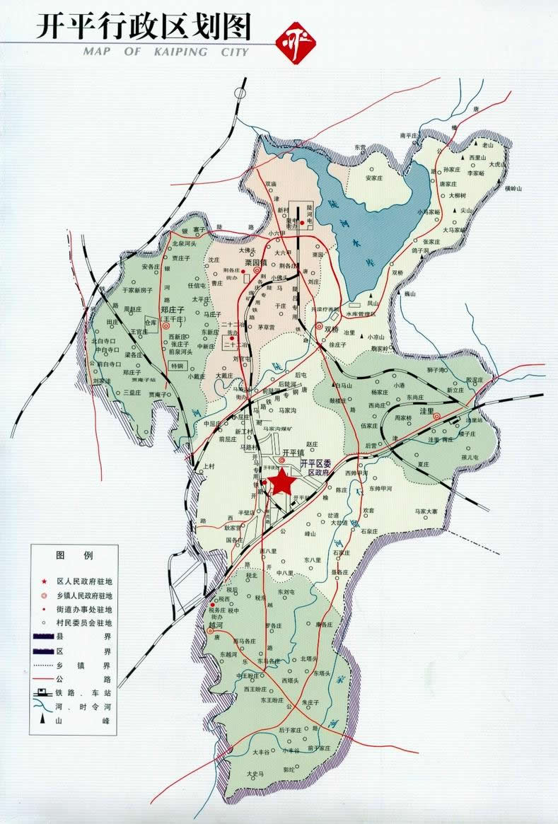 開平鎮(zhèn) 鎮(zhèn)政府駐開平西大街35號。面積52.79平方千米,人口5.80萬。轄34個(gè)村委會:開平一街、開平二街、開平三街、開平四街、開平五街、開平六街、開平七街、東帥甲河、西帥甲河、馬家大寨、馬家溝、小屈莊、前屈莊、中屈莊、半壁店、大岔道、石泉莊、前陡河、后陡河、耿家營、中八里、東八里、西八里、國各莊、聶各莊、石家莊、豐山、趙莊、上村、后屯、馬路、歡套、陳莊、岔道。