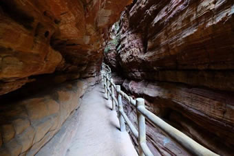 峽長4000米,一般寬1到2米,最窄處只有十幾厘米,壁高150米,這里紅巖絕壁,險峰對峙,黃巢曾在此聚兵起義,抬頭仰望,青天一線,俯視腳下,水流不斷,相隔不遠便有一道瀑布,溪水清澈見底,清涼透骨。