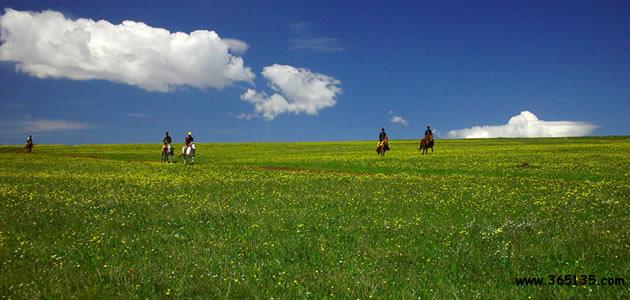 為不存在過度放牧問題,再加上雨量充沛,這里的草顯得更為原始。與草打成一片的爛漫野花,也成了蜜蜂、蝴蝶爭相追逐的目標(biāo),紅色的山丹、白色的銀蓮、粉色的老鸛草以及其他幾十種叫不出名兒的花,從每年的5月至10月輪番上陣,讓空中草原又擁有“空中花園”的美譽(yù)。這里有兩種花最為惹人,一個(gè)是雪絨花,看似它的白色小花不夠艷麗,但它身份高貴,被瑞士、奧地利、芬蘭等國家奉為國花,對(duì)于這種珍稀花種,當(dāng)年馮驥才來到蔚縣空中草原后發(fā)現(xiàn)它竟在此大面積地安家落戶,欣喜地稱這里是“中國雪絨花的故鄉(xiāng)]”。另一種便是野罌粟,雖然名字不大惹人愛,但它生命力強(qiáng),黃色花瓣格外鮮艷奪目,它們?nèi)缤艚鹣阋话沅佌乖诰G色原野中,場面煞是壯觀。