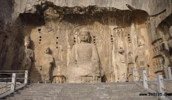 龍門(mén):位于洛陽(yáng)市洛龍區(qū)龍門(mén)鎮(zhèn)伊河兩岸。這里“兩山相對(duì),望而若闕。伊河歷其間北流”(水經(jīng)注)所以古 稱伊闕。伊河兩岸的龍門(mén)山和香山,石壁峭立,空缺如門(mén),由于處在隋、唐帝都之南故叫龍門(mén)。龍門(mén)滿山翠柏,瀑布飛泉,長(zhǎng)橋臥空,伊水碧流,尤以龕窟雕飾著稱于世。自古以來(lái),“龍門(mén)山色”被譽(yù)為“洛陽(yáng)八大景”之首。龍門(mén)石窟開(kāi)始營(yíng)造于北魏孝文帝太和十九年。歷經(jīng)東魏和西魏,北齊和北周,以及隋、唐連續(xù)營(yíng)造達(dá)四百多年之久。以后,五代、北宋、清均有雕造,但為數(shù)甚少。據(jù)龍門(mén)文物保管所統(tǒng)計(jì)兩山現(xiàn)存窟龕二千一百多個(gè),佛塔四十多座,大小造像十萬(wàn)余尊,其中最大的高17.14米,而最小的僅有2厘米。龍門(mén)石窟規(guī)模宏大,分布于伊河兩岸懸崖峭壁之上的潛溪寺、賓陽(yáng)北洞、賓陽(yáng)中洞、奉先寺、萬(wàn)佛洞、蓮花洞、藥方洞、古陽(yáng)洞、賓陽(yáng)南洞、大萬(wàn)伍佛洞、擂鼓臺(tái)三洞、伊闕佛龕之碑、龍門(mén)二十品,總計(jì)長(zhǎng)達(dá)一千多米,內(nèi)容豐富多彩,雕藝精美而超凡。有史以來(lái),它與敦煌石窟、云岡石窟,并稱為我國(guó)三大石刻藝術(shù)寶庫(kù)。一九六一年國(guó)務(wù)院確定龍門(mén)石窟為全國(guó)重點(diǎn)文物保護(hù)單位。