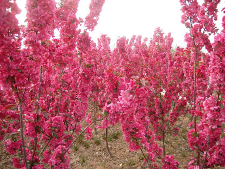 海棠園位于植物園西南角,占地28畝。海棠全世界共有35種,我國25種,該園收集薔薇科蘋果屬、木瓜屬的海棠品種27個,14845株。有傳統(tǒng)品種:貼梗海棠、垂絲海棠、西府海棠、木瓜海棠、梨花海棠等,還有引自北美的花果俱佳的絢麗海棠、道格海棠、鉆石海棠、霍巴海棠、紅玉海棠、草莓果凍海棠、王族海棠、粉芽海棠、火焰海棠等。海棠一樹千花,唐朝《花譜》稱海棠為“花中神仙”。每年三、四月間,滿坡的海棠萬花齊放,層層疊疊、連綿不斷、紅白相溶、如曉天的明霞。海棠園內(nèi)地形起伏變化,新古洛渠貫穿其中,渠邊種植水生植物,野趣天成,在水流平緩處種植荷花、睡蓮;臨水處栽植垂柳,可謂是“柳占三春色,荷香四座風”。