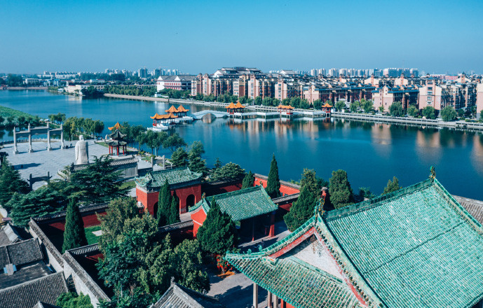 龍湖因伏羲氏定都宛丘,以龍紀官,號曰龍師而得名,水域面積近萬畝,是國家濕地公園、國家水利風景區(qū),也是中國面積最大的內(nèi)陸環(huán)城湖,被譽為“中原明珠”、“內(nèi)陸奇觀”。