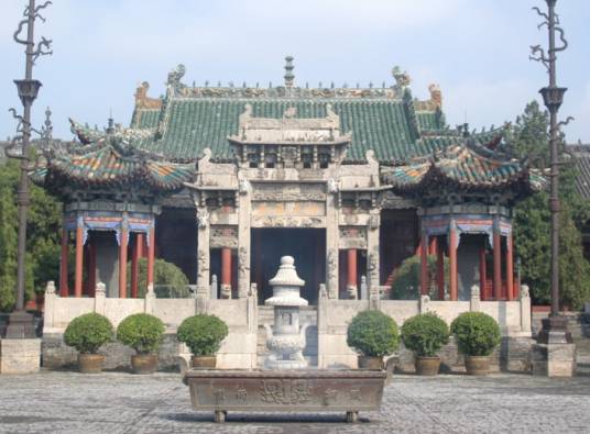 周口關(guān)帝廟,整座建筑群占地20余畝,沿南北中軸線,分三進院落縱深布局,結(jié)構(gòu)嚴謹。其木雕、石雕、磚雕數(shù)量多,內(nèi)容豐富,工藝精湛,突出反映了清代中晚期那種追求精雕細琢、裝飾華麗的社會風尚。建筑裝飾的題材中大量采用了“二龍戲珠”、“鳳凰牡丹”、“五福捧壽”、“加官進爵”、“金玉滿堂”等各種吉祥如意圖案紋飾,是封建社會中傳統(tǒng)倫理道德的形象反映。