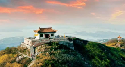 這是一座道教圣山,亦為道家福地。歷史上以“八宮兩觀一拜臺”為代表的道教建筑,如眾星拱月般環(huán)繞樂山老頂,雄偉壯觀,氣勢磅礴,引遠近朝圣者前來登高祈福。