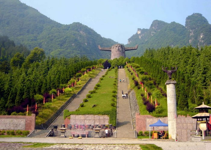 2002年通過國家質(zhì)量ISO9001和ISO 14000體系認(rèn)證,被評(píng)為國家4A級(jí)景區(qū),建成于1997年,是神農(nóng)架一個(gè)自然和人文相結(jié)合的景區(qū)。景區(qū)有特色地分為四個(gè)部分:古老植物園、千年杉王、神農(nóng)祭壇、購物長廊。祭壇內(nèi)神農(nóng)塑像高大雄偉,莊嚴(yán)肅穆,雙目微閉,似乎在洞察世間萬物。它以大地為身軀,頭像高21米,象征中華民族在21世紀(jì)蒸蒸日上,寬35米,與它的高加起來共56米,象征著56個(gè)民族的大團(tuán)結(jié)。祭壇外圍的五色石代表著五行,即金、木、水、火、土,內(nèi)方外圓,即有天圓地方之意。祭壇的兩側(cè)用八組壁畫記錄著遠(yuǎn)古神農(nóng)氏的功德,即降牛以耕、焦尾五弦、積麻衣葛、陶石木具、原始農(nóng)耕、日中為市、穿井灌溉。八組壁畫以藝術(shù)的手法敘述了神農(nóng)氏的豐功偉業(yè),表達(dá)了子孫們的無限追戀。