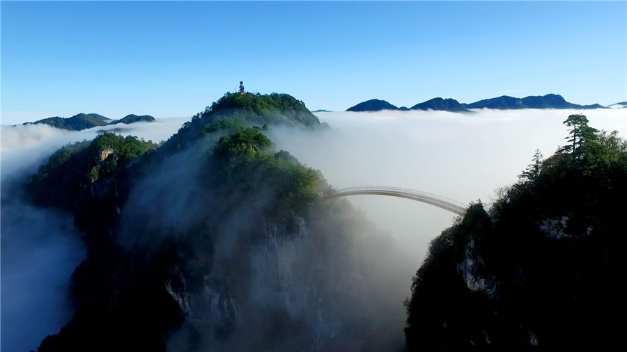(2)流云佛光型:獨(dú)特的地形和濕潤的氣候造就了綺麗壯觀的云霧霞光,是神農(nóng)架特有的景致。更神奇的是,云海之上偶爾懸起一輪五彩光環(huán),環(huán)中似有人影晃動(dòng),那就是舉世罕見的“佛光”,中央新聞電影制片廠記者曾在天門埡、燕子埡一帶攝下這一自然奇景,使神農(nóng)架成為與峨眉山齊名的又一塊仙山佛地。