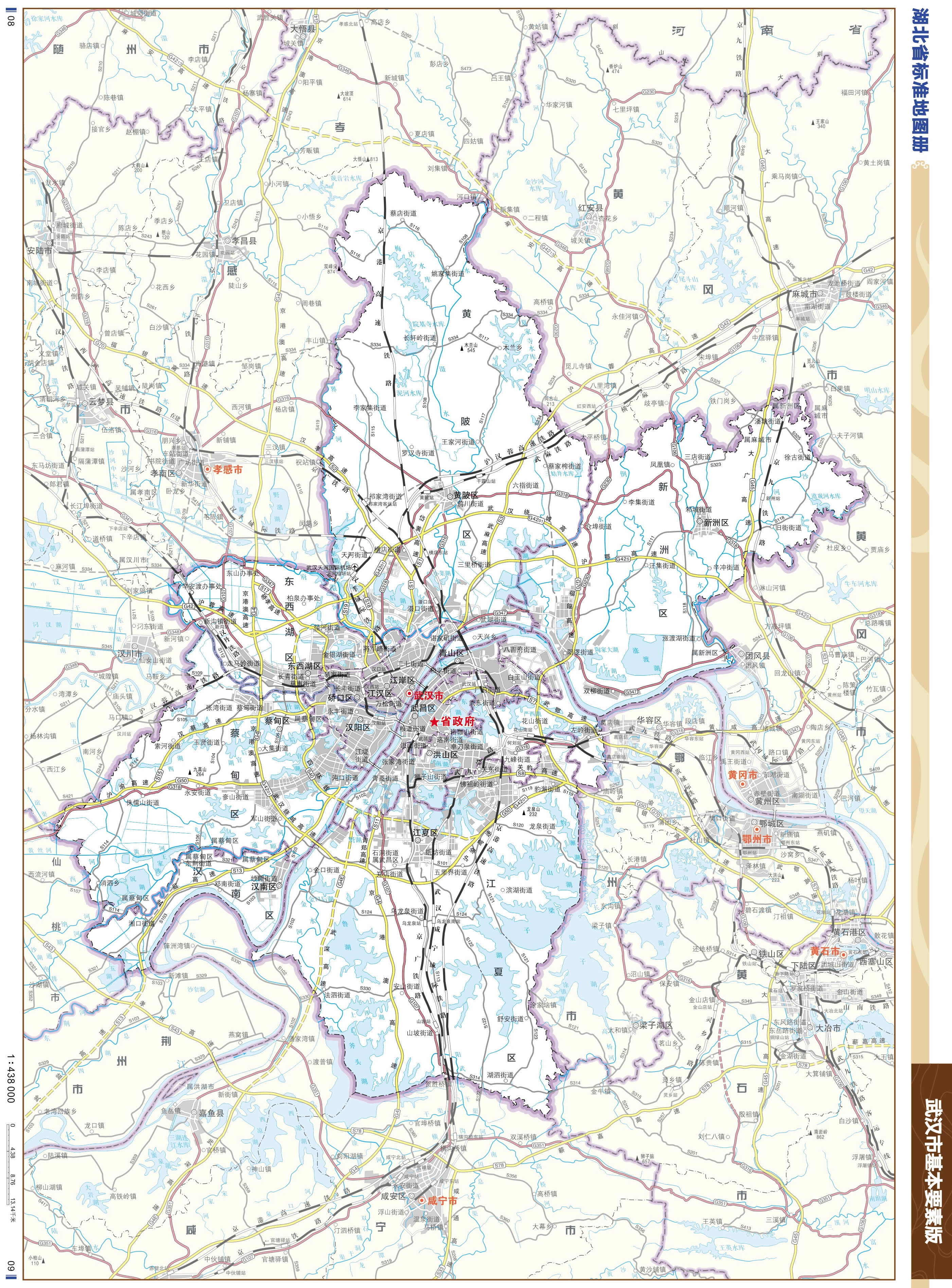省高速:S1岱黃高速公路、S2漢孝高速公路、S3武麻高速公路、S5武英高速公路、S7漢鄂高速公路、S8武黃高速公路、S11青鄭高速公路、S12武嘉高速公路、S13武監(jiān)高速公路、S15漢蔡高速公、S18武漢機(jī)場高速、武漢天河機(jī)場第二高速公路、武陽高速