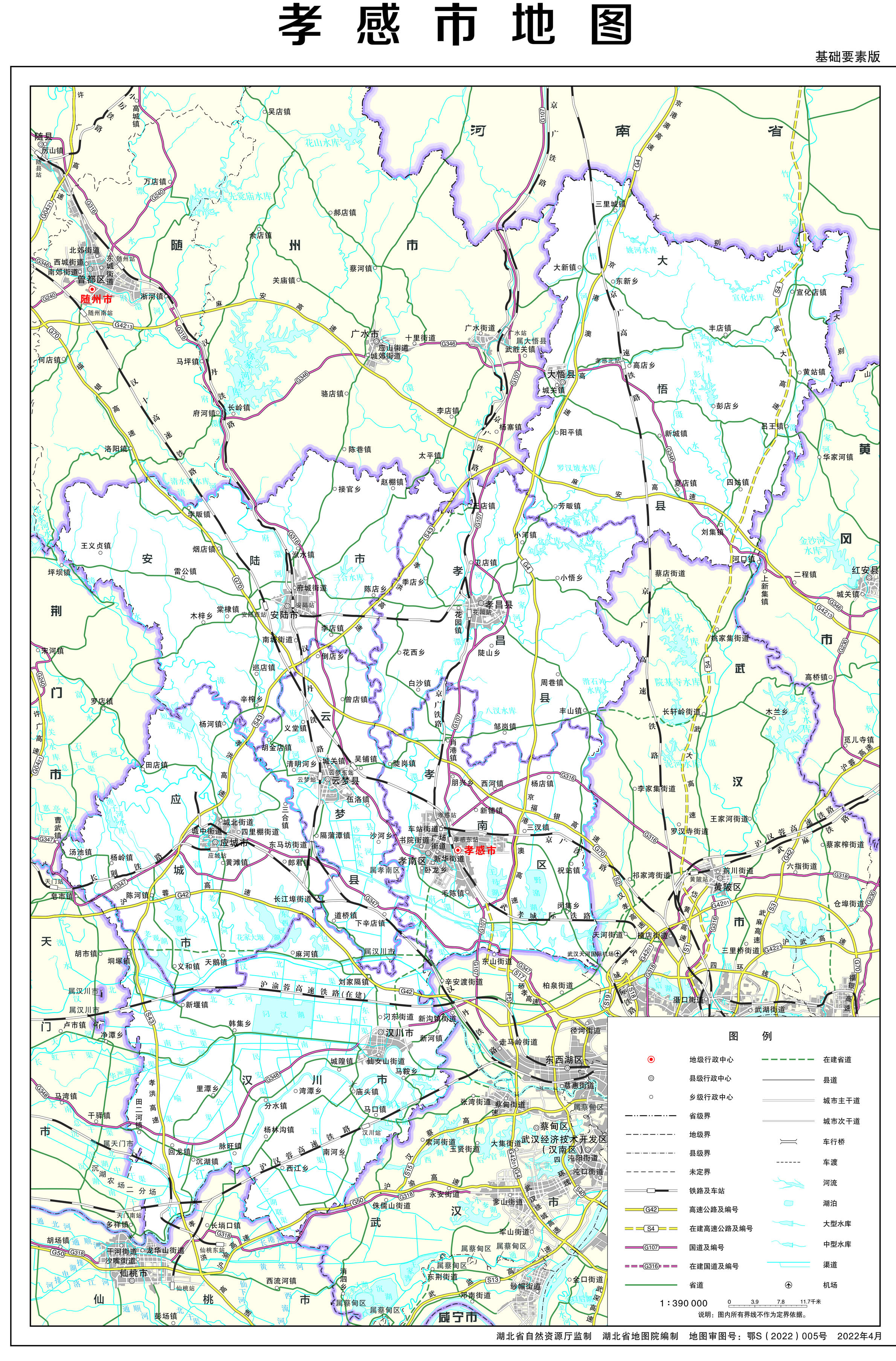 孝感市轄1個市轄區(qū)、3個縣、代管3個縣級市: