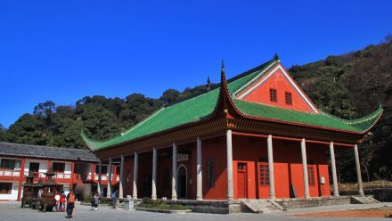 藏經(jīng)殿在祥光峰下,是南朝陳廢帝光大二年(568年)慧思禪師所建。由于明太祖賜大藏經(jīng)一部,存放寺中,所以稱為“藏經(jīng)殿”。以后又相繼改為祥光寺、普光寺,后來仍叫藏經(jīng)殿,現(xiàn)今的建筑是1933年所重建。