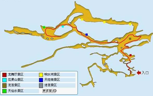 黃龍洞以立體的洞穴結(jié)構(gòu),龐大的洞穴空間,寬闊的廳堂及數(shù)以萬(wàn)計(jì)的石筍,高大的洞穴瀑布,水陸兼?zhèn)涞挠斡[線(xiàn)等優(yōu)勢(shì)構(gòu)成了極具特色的游覽洞穴,洞內(nèi)有1庫(kù)、2河、3潭、4瀑、13大廳、98廊,以及幾十座山峰,上千個(gè)白玉池和近萬(wàn)根石筍。由石灰質(zhì)溶液凝結(jié)而成的石鐘乳、石筍、石柱、石花、石幔、石枝、石管、石珍珠、石珊瑚等遍布其中,無(wú)所不奇,無(wú)奇不有,仿佛一座神奇的地下“魔宮”。黃龍洞現(xiàn)已開(kāi)放有龍舞廳、響水河、天柱街、天仙瀑、龍宮等6大游覽區(qū),主要景觀有定海神針、萬(wàn)年雪松、龍王寶座、火箭升空、花果山、天仙瀑布、海螺吹天、雙門(mén)迎賓、滄海桑田、黃土高坡等100多個(gè)。