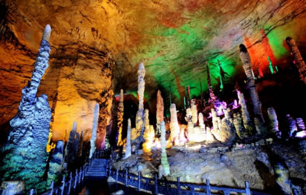 黃龍洞位于湖南省張家界市核心景區(qū)武陵源風(fēng)景名勝區(qū)內(nèi),是世界自然遺產(chǎn)、世界地質(zhì)公園武陵源的有機(jī)組成部分,屬典型的喀斯特巖溶地貌,以其龐大的立體結(jié)構(gòu)洞穴空間、豐富的溶洞景觀、水陸兼?zhèn)涞挠斡[觀光線(xiàn)路獨(dú)步天下,被列為國(guó)際旅游洞穴會(huì)員、全國(guó)35個(gè)王牌景點(diǎn)之一、中國(guó)首批AAAA級(jí)旅游景區(qū)、中國(guó)旅游首批知名品牌、中國(guó)馳名商標(biāo)、湖南省最佳旅游景區(qū)、張家界旅游精品線(xiàn)之一,享有“世界溶洞奇觀”、“世界溶洞全能冠軍”之美譽(yù),2005年被評(píng)選為“中國(guó)最美旅游溶洞”。