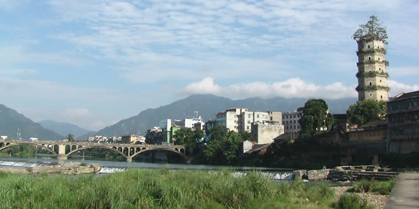 出縣城沿平溪江西行4公里,江水?dāng)財嘌┓迳綎|去,兩安險峰對峙,形成峽谷。相傳峽谷為懸崖覆蓋,江水穿洞而去,至此形成深潭,名曰“洞口潭”,后演變?yōu)?ldquo;洞口塘”,洞口之名源于此。