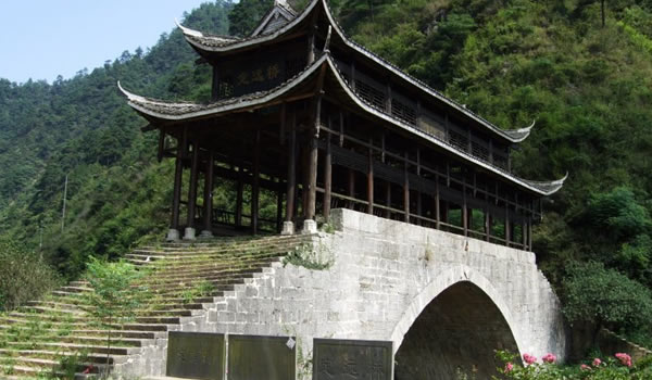 定遠(yuǎn)橋 定遠(yuǎn)橋位于綏寧縣關(guān)峽鄉(xiāng),是綏寧縣知縣范成龍捐獻(xiàn)自己的俸祿銀子于康熙二十三年(1684年)修建。橋長一十二丈六尺,寬二丈六尺,高五丈六尺,單孔,半圓拱。橋面用青石鋪面,青石已被磨得油亮發(fā)光,橋頂屋架木瓜、懔條緣皮、青瓦翹檐、瓦頭潔白,橋依山而建,古樸威嚴(yán);亭為杉木架構(gòu),卯榫嵌合,不用一釘,圓石為礎(chǔ),巨木為柱,片板為欄,長方為座,可供憩息,可避風(fēng)雨。由于這里的險關(guān)隘口天然生成,為歷代兵家要塞,故名關(guān)峽;現(xiàn)為湖南省保護(hù)文物; 橋下的“蘭溪”溪水清澈見底,水流湍急,水似一把利刃,把猴子山一劈兩開穿山而過。 |