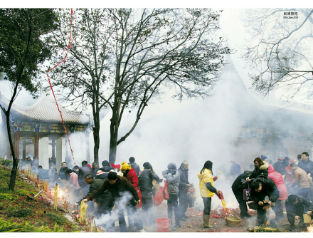 炎帝陵民間祭祀以告祭為主。祭祀時(shí)間多選在每月的初一、十五以及各種節(jié)令、節(jié)慶。此外,每逢炎帝生辰日(農(nóng)歷四月二十六日),炎陵方圓幾百里的群眾都會(huì)匯集于炎帝陵,祭祀炎帝,祈福求平安。民間祭祀儀式有墓前牲祭、上香敬供、跪拜祈福、許愿求應(yīng)、還愿祭拜等等。每年正月,各地民眾爭(zhēng)相在炎帝陵宰殺牲畜,供上果品、美酒,向始祖行三拜九叩之禮,獻(xiàn)香燃炮,傳說(shuō)這樣就能得到始祖庇佑,一年順順利利,所以每年正月炎帝陵香火尤為旺盛。民間祭祀對(duì)祭時(shí)、禮程亦十分講究,通常拜祭始祖前都會(huì)洗梳干凈,行跪拜叩首之拜之祭過(guò)炎帝后,將自己的心愿和所求寫于帛或紙是,用線系于小石子等重物一端,拋掛于炎帝陵內(nèi)的古樹(shù)上,祈求炎帝保佑愿望實(shí)現(xiàn)。